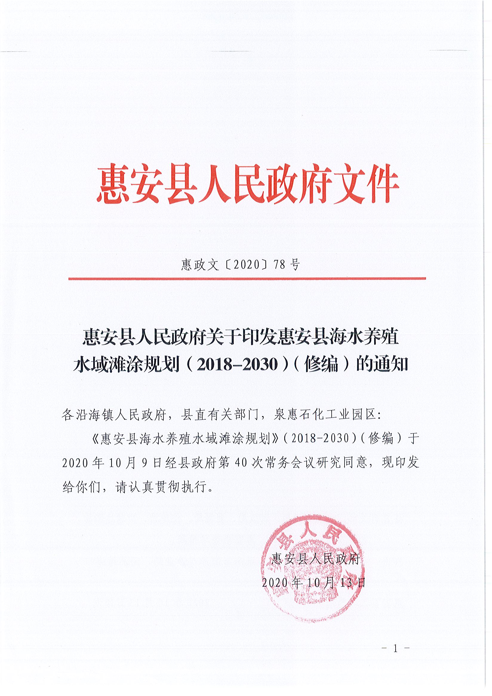 - 备注/文号:惠政文[2020]78号