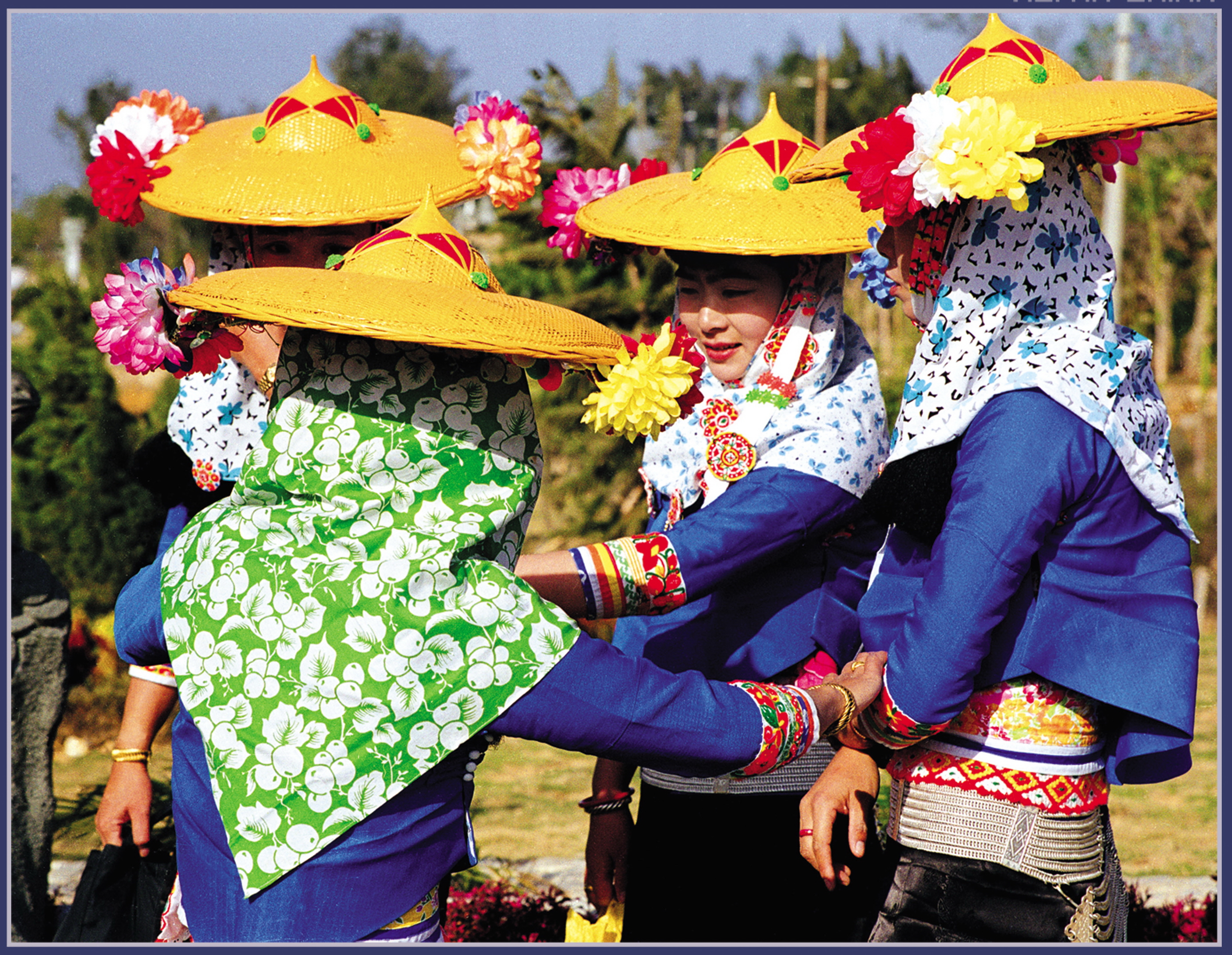 1.整体造型由惠安女服饰独有的三角形构造得到启发,结合惠安女服饰黄斗笠、蓝上衣,花头巾的颜色搭配,勾勒出惠安女的意象图形。